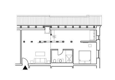 • Wohn-/Schlafbereich mit Doppelbett und Schlafcouch